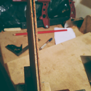 One day, I tried to bend a piece of #Koa I bought from a reseller in #Hawai. Big mistake, the piece broke very easily, although I had never broken a piece before. I decided to go for #laminatedSides using the remaining side as decorative wood. It means I had to rip saw it...by hand, I don't have a band saw.... This is what I got, after a few tens of minutes.